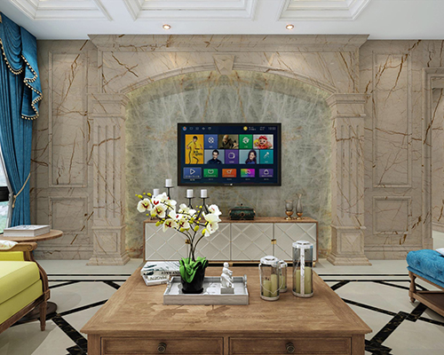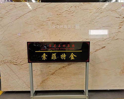 索菲特金大理石的底色较浅,光度非常好,板面的金黄色纹线,有行云流水般的动感。可以大面积用在室内的墙面、地面或楼梯踏步、台面等。