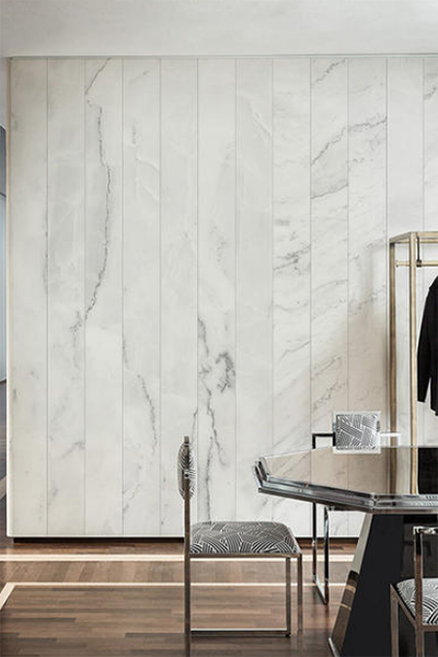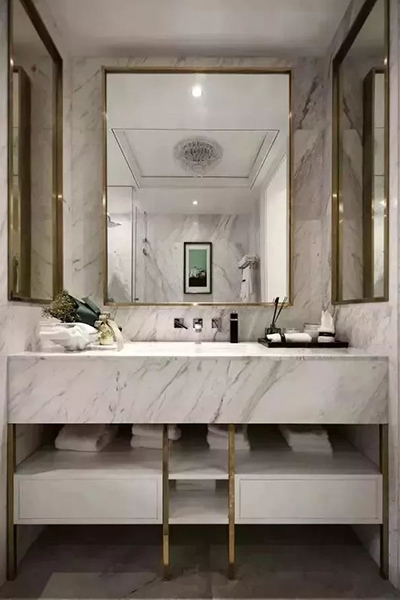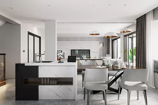 在现代风格的装修中,最经典的莫过黑白灰的搭配,简约又不简单,能迅速提升家装档次。其中白色系天然大理石因其简约时尚感,在近几年倍受喜爱。