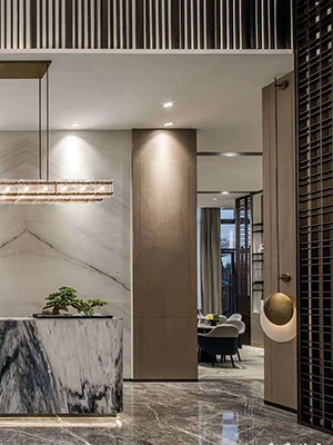 小贴士:「爱马仕灰」是一款“娇贵”石材,和所有大理石一样,它的板面也较脆。所以在运输、保存过程中一定要规范操作,避免出现断裂。同时,也要做好防污、防刮伤工作,才能保证它最佳的装饰效果。